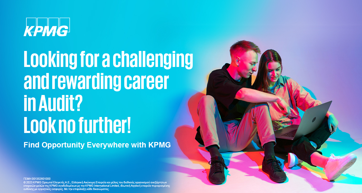 Από τις 8 Μαΐου 2023 ξεκίνησε επίσημα η διαδικασία στελέχωσης στις Ελεγκτικές υπηρεσίες της KPMG, με νέους αποφοίτους Πανεπιστημιακών Σχολών, προπτυχιακού και μεταπτυχιακού επιπέδου της Ελλάδας και του εξωτερικού. Οι θέσεις εργασίας απευθύνονται σε απόφοιτους λογιστικής, χρηματοοικονομικής, διοικητικής και οικονομικής κατεύθυνσης (ή άλλου συναφούς αντικειμένου). Η εργασιακή εμπειρία δεν είναι απαραίτητη όμως απαιτείται η πολύ καλή γνώση της Αγγλικής γλώσσας.